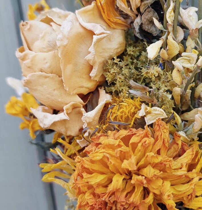 Dried flowers can last for many months if they are well looked after – handled carefully, kept out of direct sunlight and away from water and humidity. Some of the flowers may naturally fade over time.