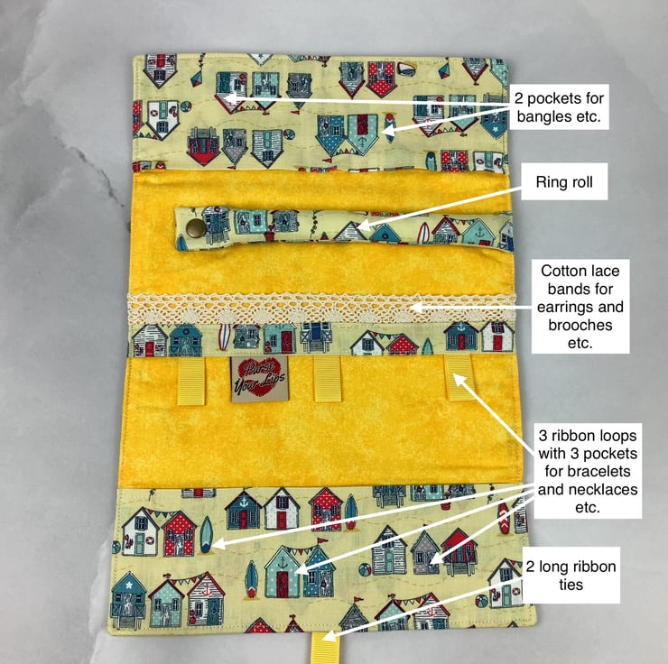Beach huts jewellery roll, Seaside jewellery storage, Travel organiser
