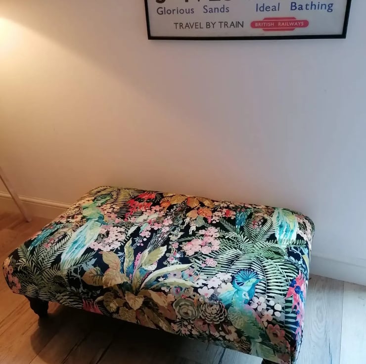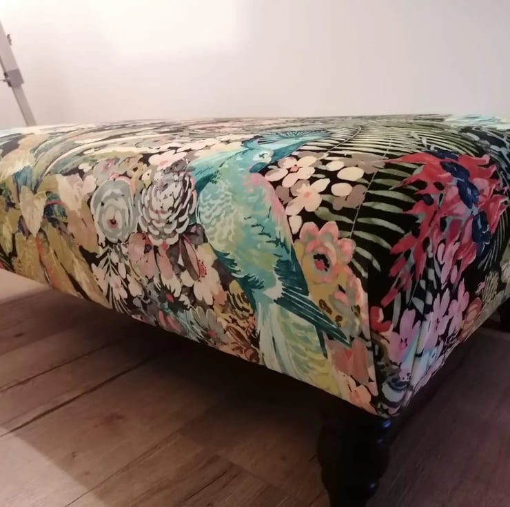 Pictured above is our medium size footstool in 'Linwood Rainforest Rabble Velvet' with Premium turned legs. Other legs and sizes are available, do get in touch and ask.
