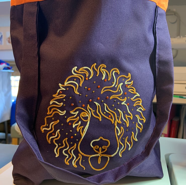 Who doesn’t love a mop heided doodle to greet them? This boldly coloured purple and orange bag with sparkling stones is the perfect accessory for any doodle lover. This bag is about 14 inches, good for holding books, your pooches favourite treats or brushes. Maybe it’s what you need for taking out to the shops? It is the perfect gift for the doodle lover in your life