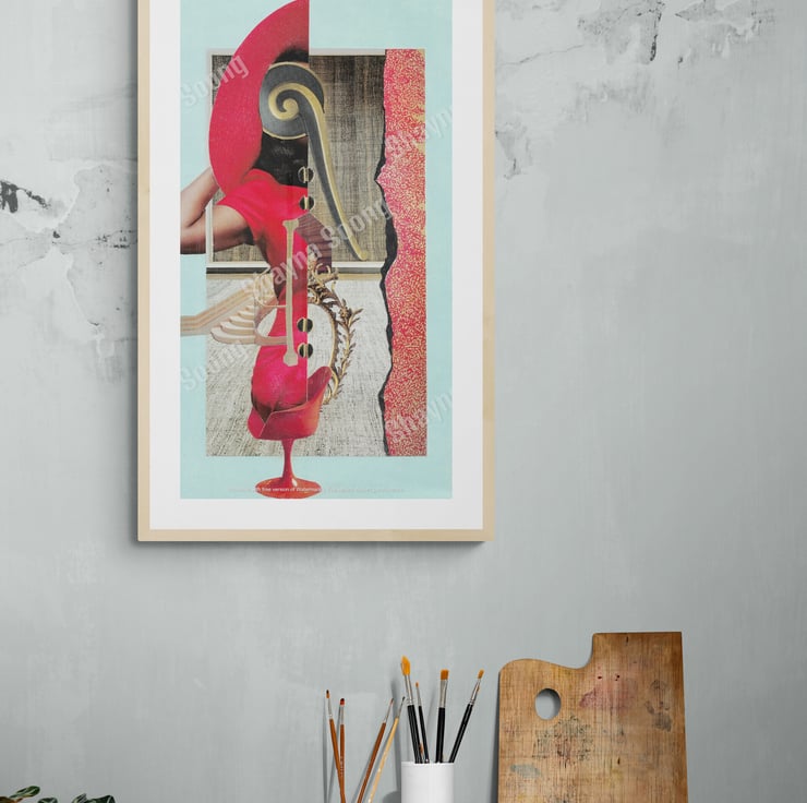A4 print of a handmade collage. The image here is watermarked and low resolution. The print that will be supplied is free of watermarks and higher resolution. See 'Inspiration' section below for more information about the image. Also available in A3 size if you choose this option when adding to basket.