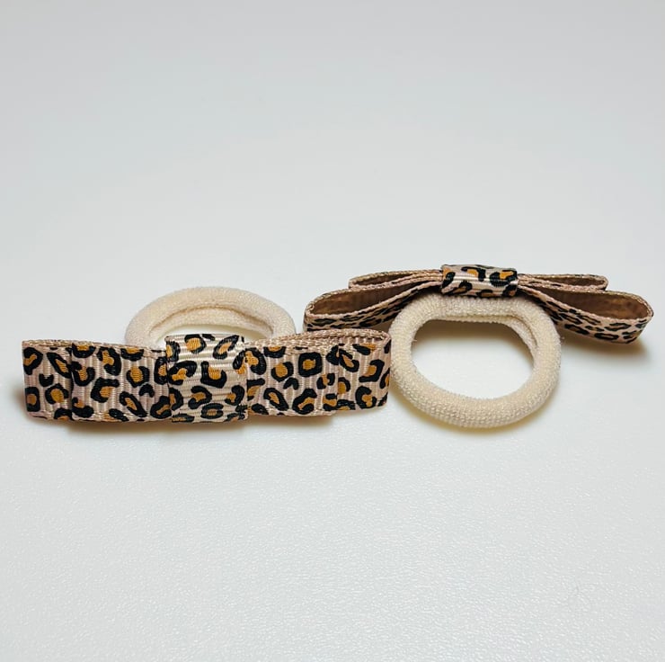Handmade Leopard Print ribbon Bows, set on mini nude bands for a soft comfortable hold.