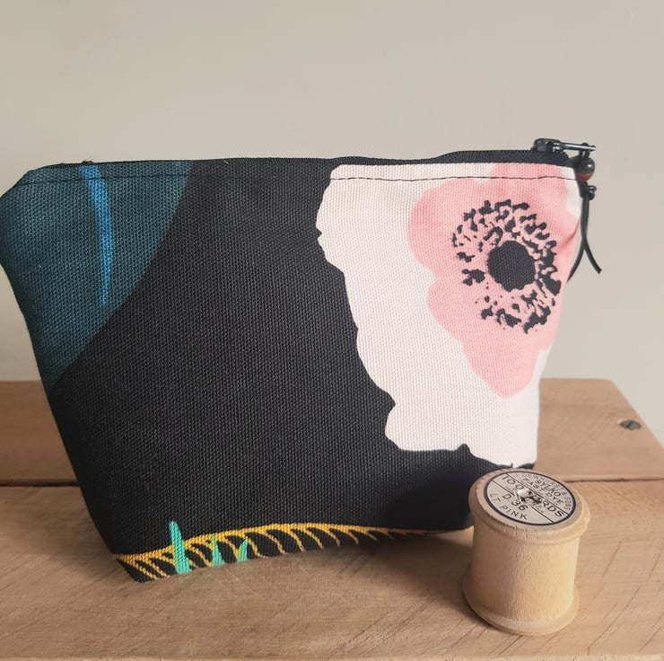 Zipped pouch: contemporary floral design on black