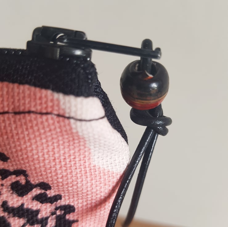 The zip has a ribbon with and two recycled African beads attached.
