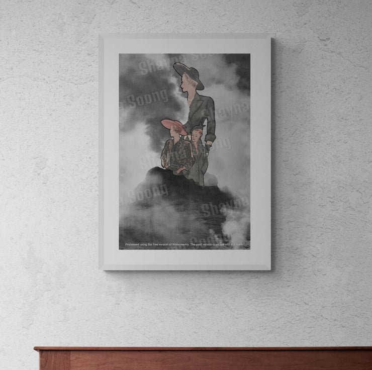 These ladies were cut out of a vintage sewing catalogue. Their placement in the wispy emissions of an awakening volcano give a whimsical, slightly ominous vibe to their existence.