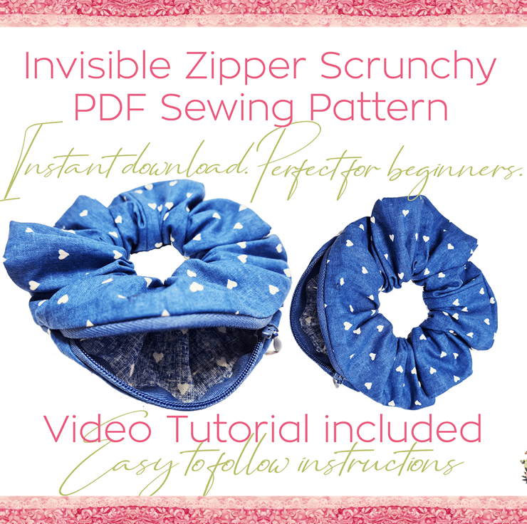 Make an Invisible Zipper Scrunchie that's perfect as a gift. This easy, beginner-friendly pattern includes everything you need to sew your own scrunchie.
