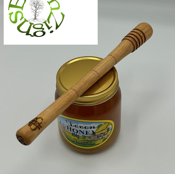 This English Beech honey dippers is larger than normal shop bought ones, making them easier to hold. Barbara turned these limited edition dippers and pyrographed the end of the handle, with the item number.