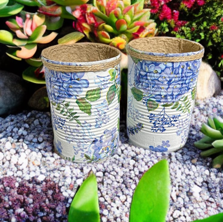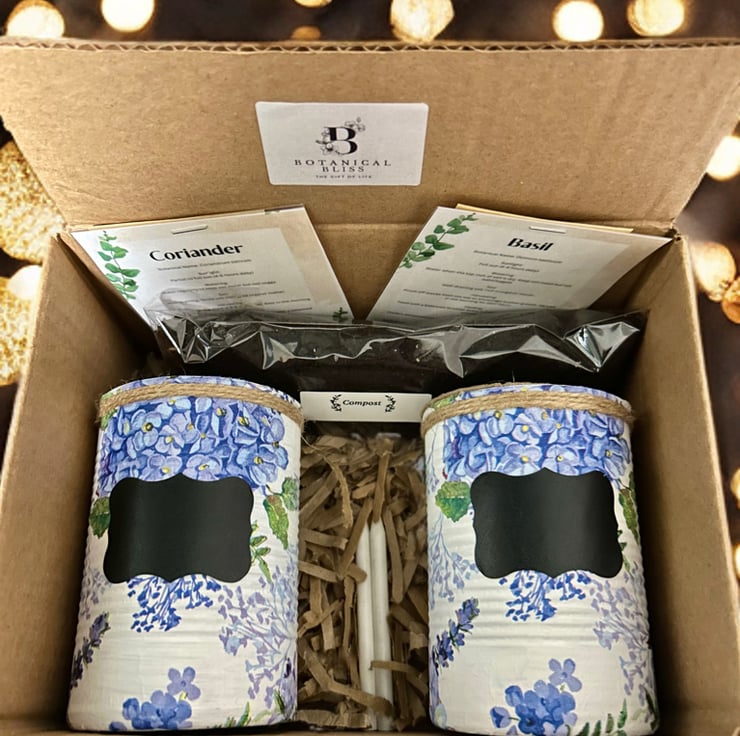 Blue hydrangea Handmade Recycled Eco-Friendly Indoor Kitchen Herb Gift Set