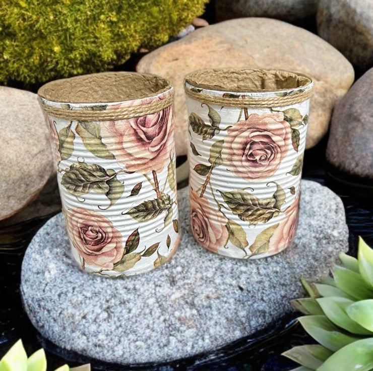 Chic Vintage Rose Handmade Recycled Eco-Friendly Indoor Kitchen Herb Gift Set