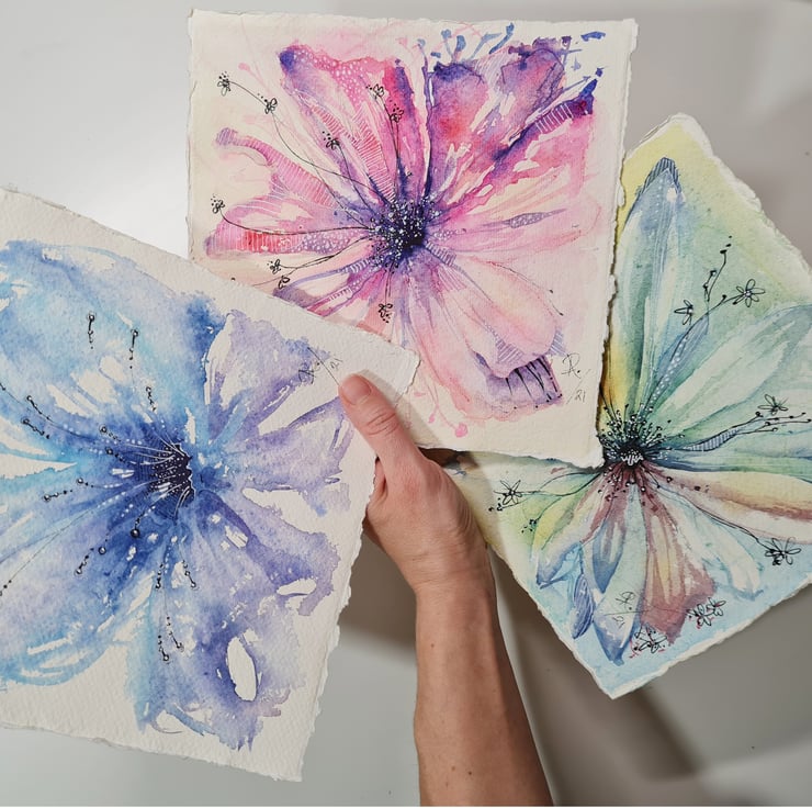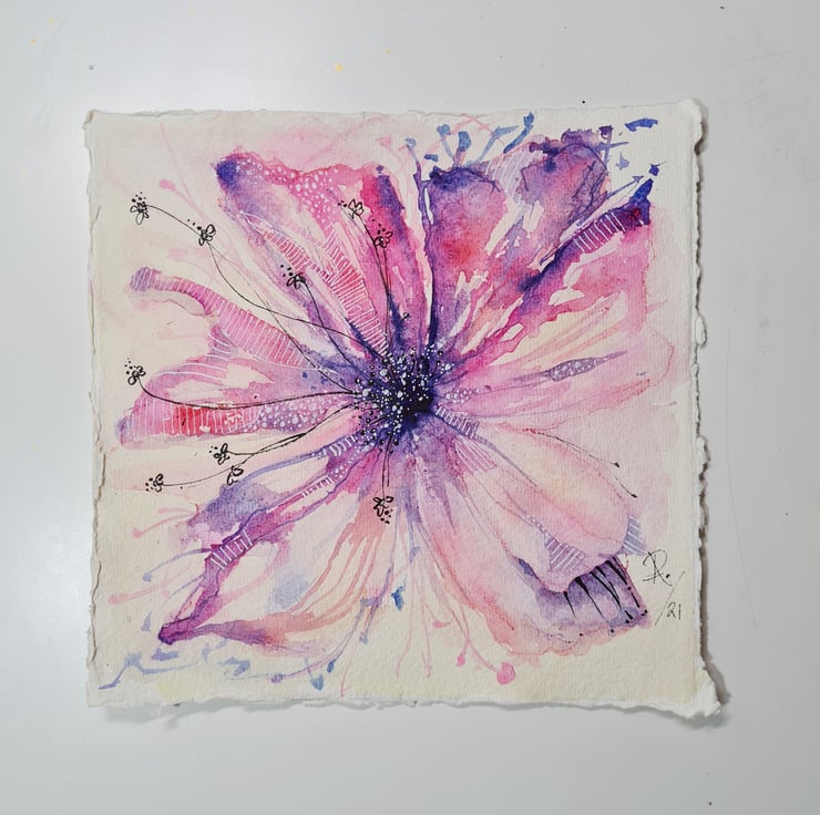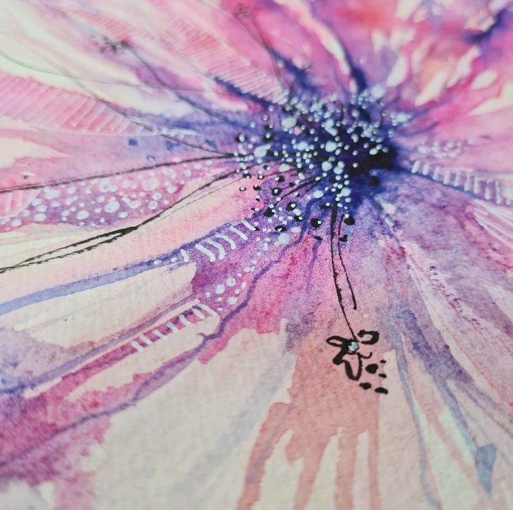 Original intuitive watercolour painting - delicate and simple with pen line art for detail.