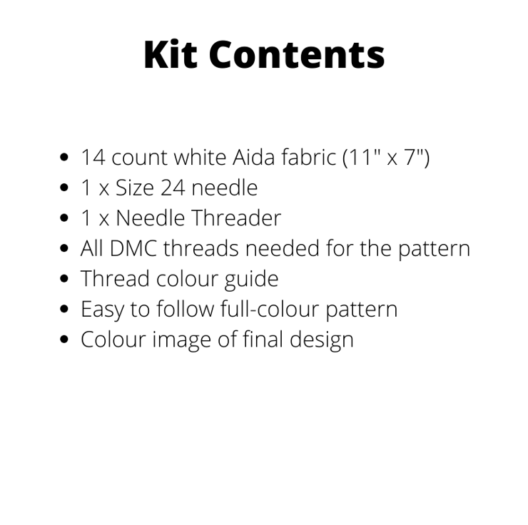 Our cross-stitch kits come fully prepared with everything you need to make this simple design. Perfect for any cross stitch enthusiast!