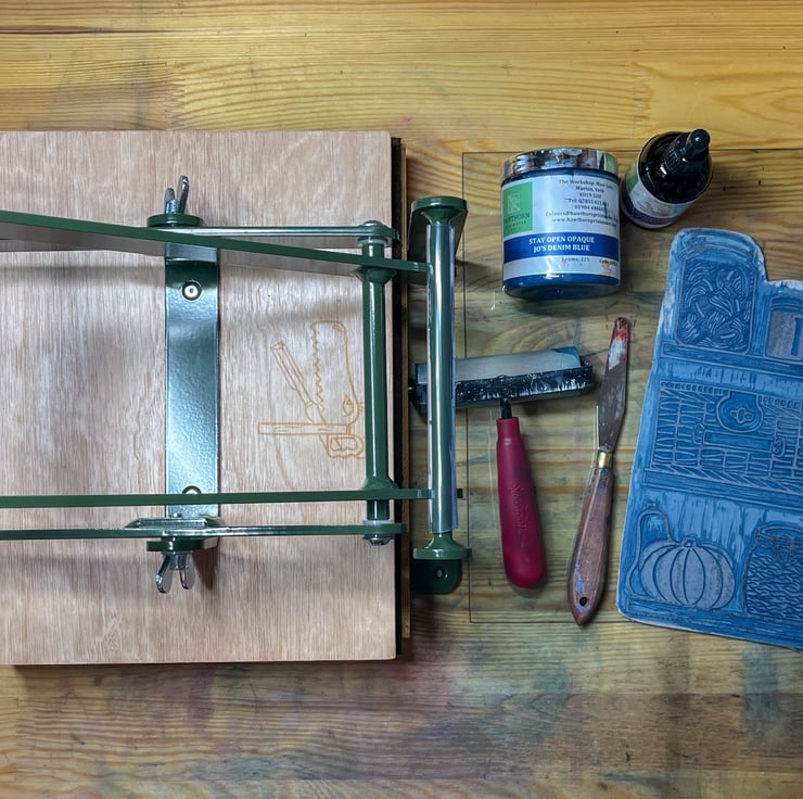 This print is from my own original design which I transferred to traditional grey lino, hand carved, inked up, and printed using my Woodzilla press.