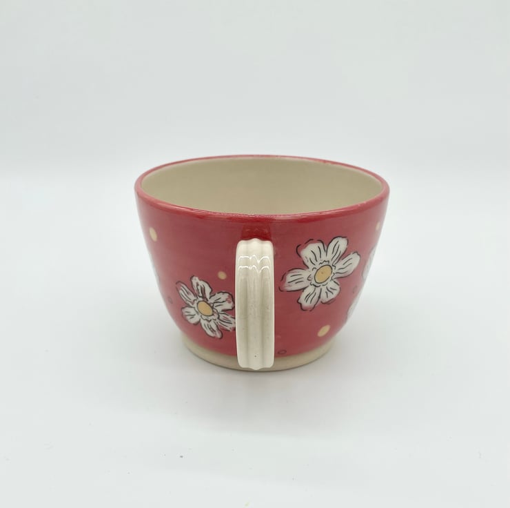 Handmade Mug Tea Coffee Red White Flowers Mothers Day Birthday Pottery Gift