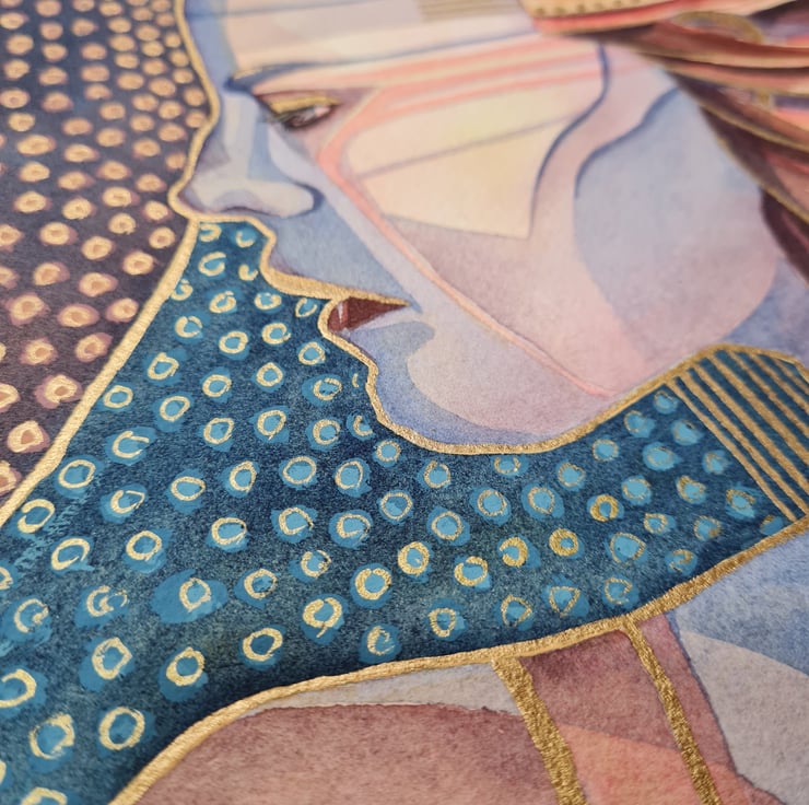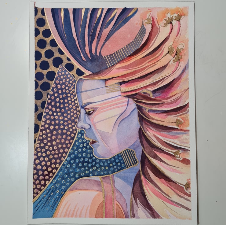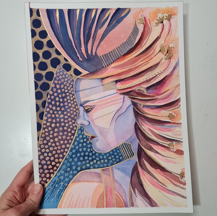 Original watercolour painting of an Amazon Warrior Princess - with Gold Watercolour detail