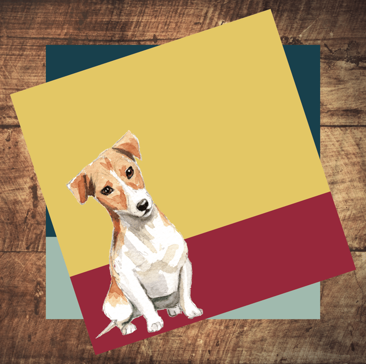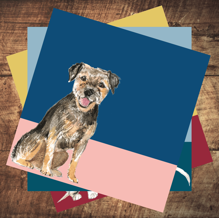 Each of these beautiful illustrated dog cards measure 10cm square and come with a contrasting cream envelope