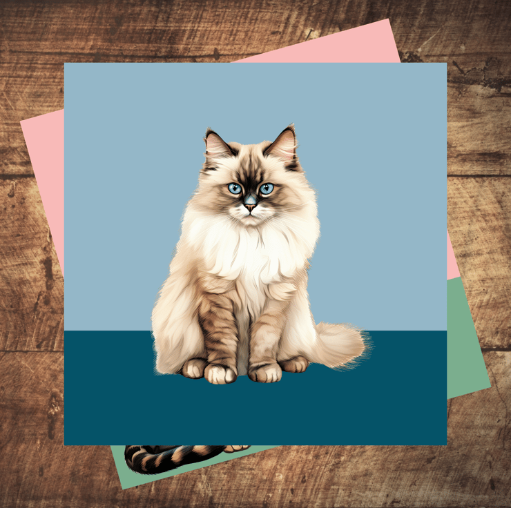 Each of these beautiful illustrated cat cards measure 10cm square and come with a contrasting cream envelope