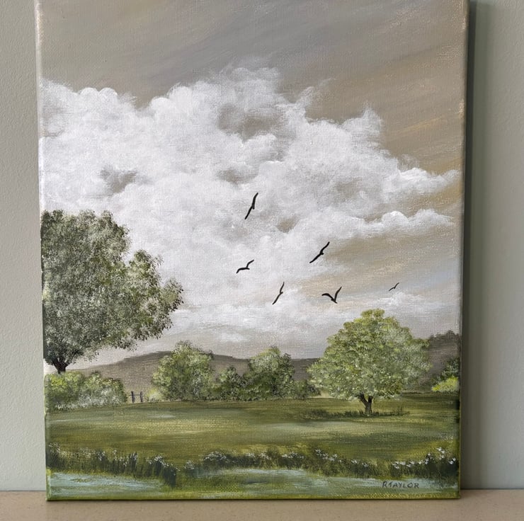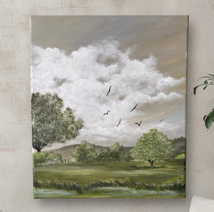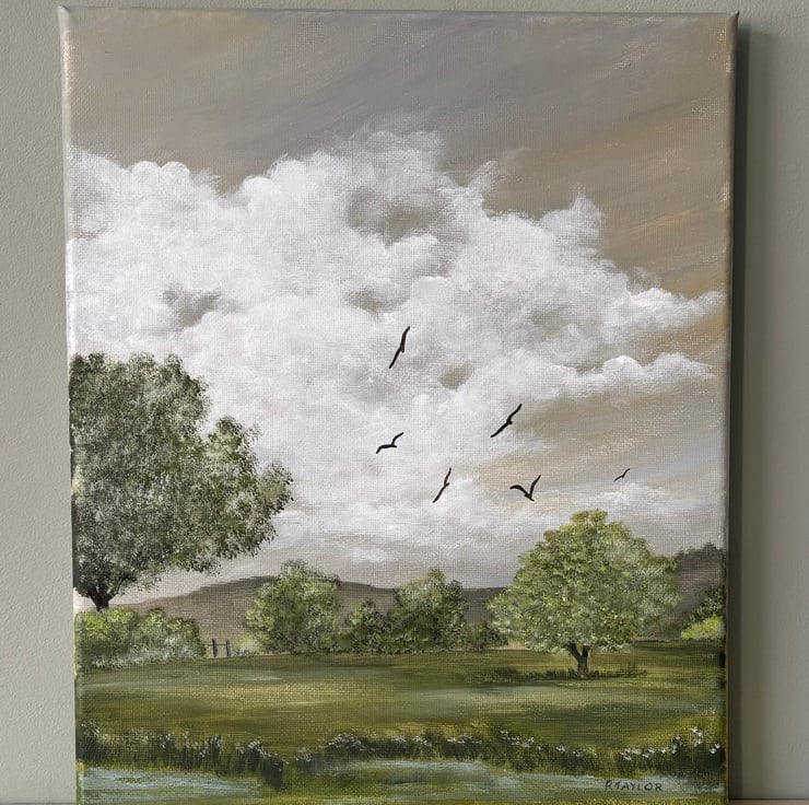 Original landscape painting in acrylic on a stretched canvas measuring 12” x 10”