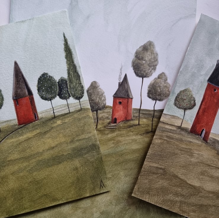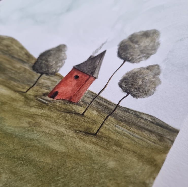 An original watercolour painting in a palette of neutrals, greens & red. I paint with high quality Winsor & Newton watercolours on professional 300gsm watercolour paper. All new additions to my shop are one of a kind original paintings.