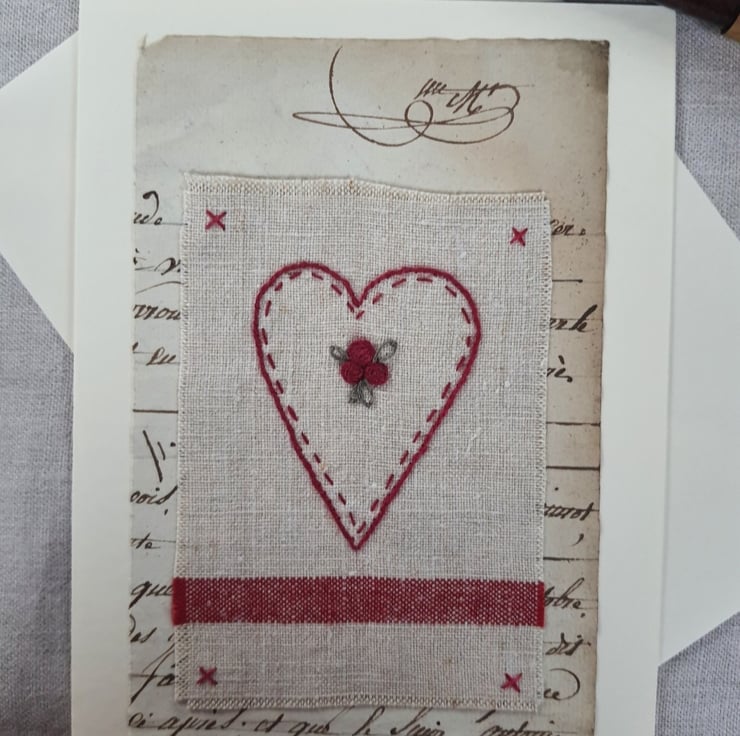 I started making greetings cards as a way of using up small scraps of French vintage linen left over from larger projects as I hate to waste even the smallest scrap of fabric! It also allows me to indulge in my love of embroidery. Each card is unique and designed by me.