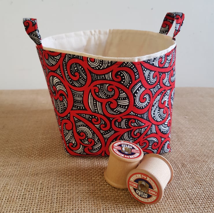 The fabric is a good quality cotton which I have interfaced so it holds its shape, and it is lined with cotton calico.