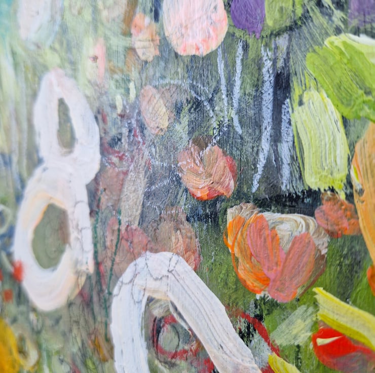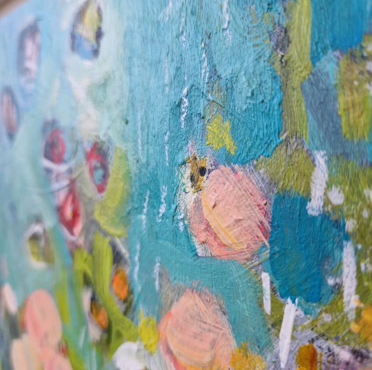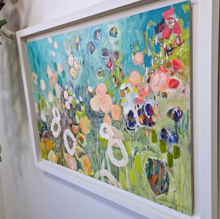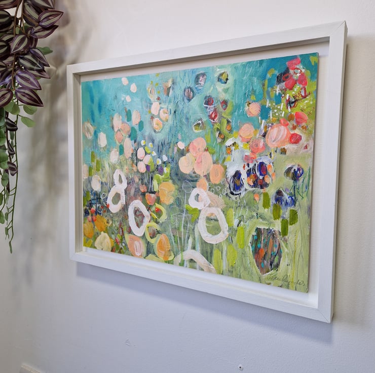 This contemporary floral abstract brings a sense of comfort and joy. Soft, yet vibrant colours to sooth and calm the mind.