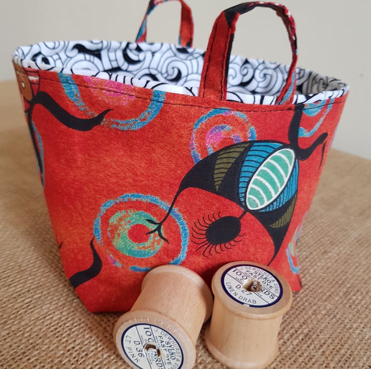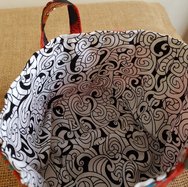 The fabric is a good quality cotton which I have interfaced so it holds its shape, and it is lined with a black and white craft cotton.