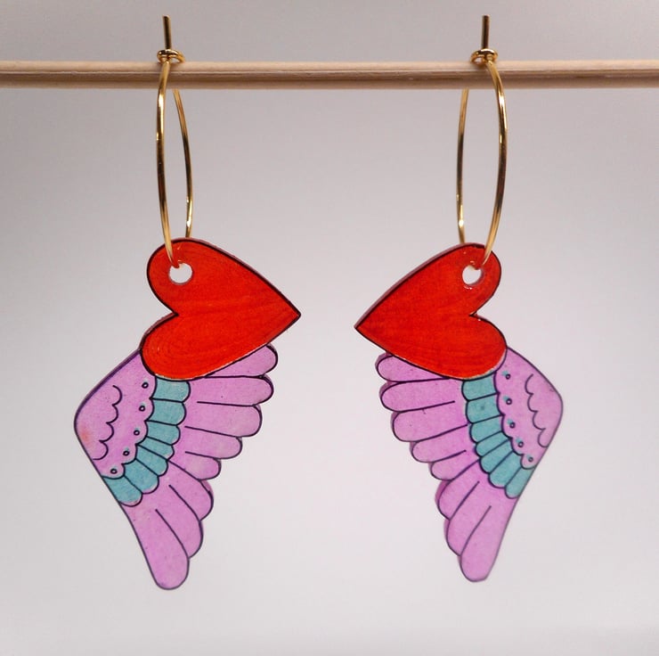 Each Flutter Heart is attached to a 20mm Gold Plated, steel, hoop wire.