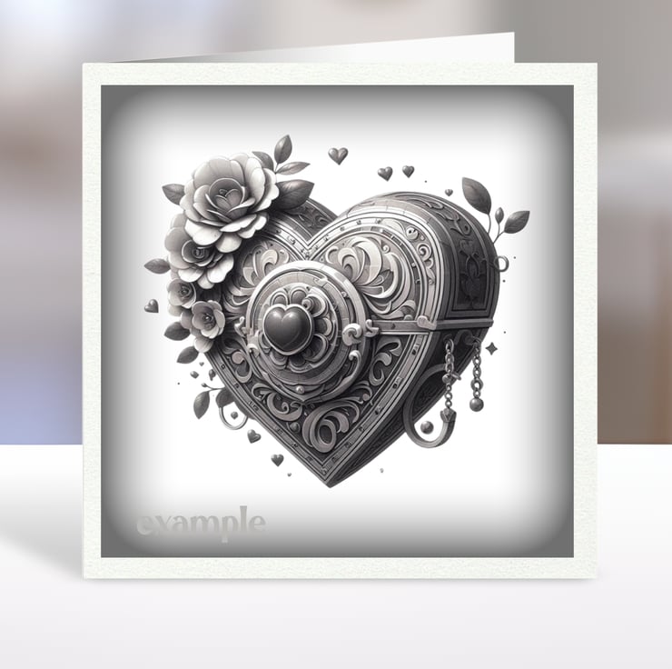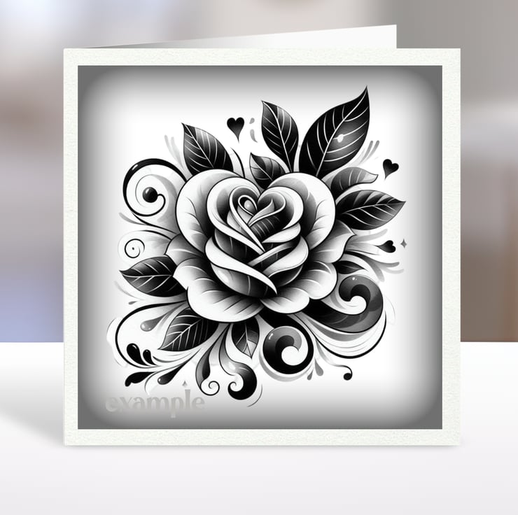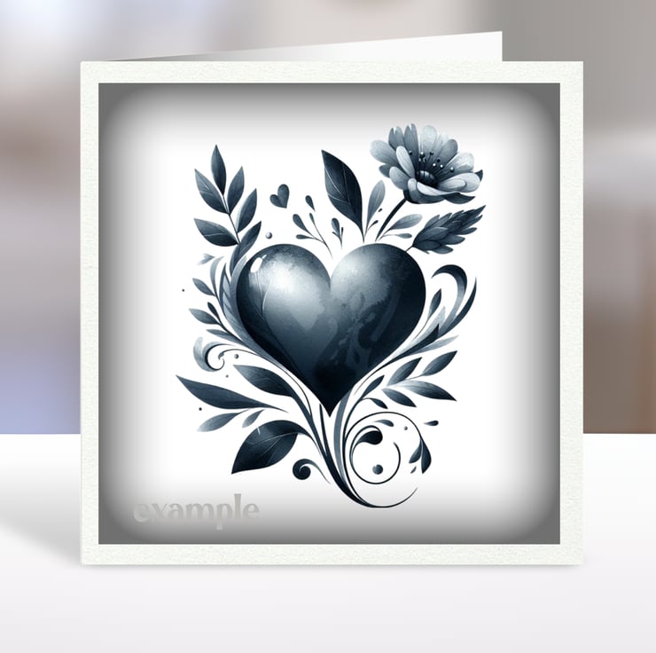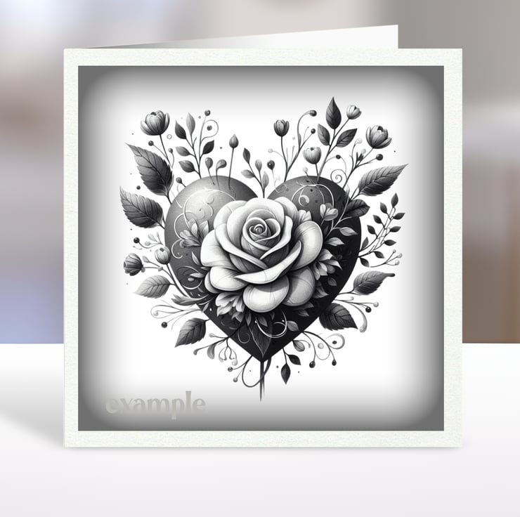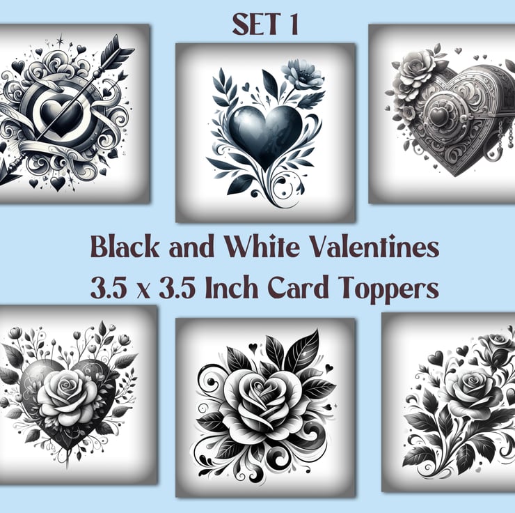 A set of six 3.5 inch square card toppers - Romantic black and white monochrome Valentine's - Set 1 of 2