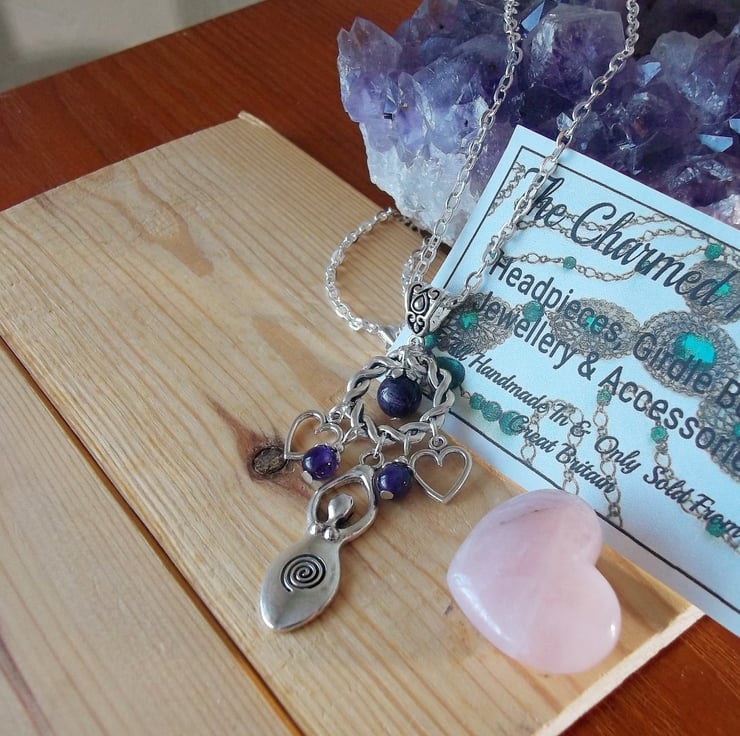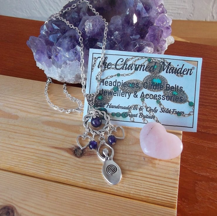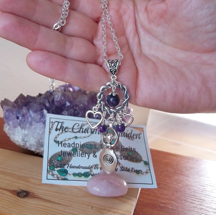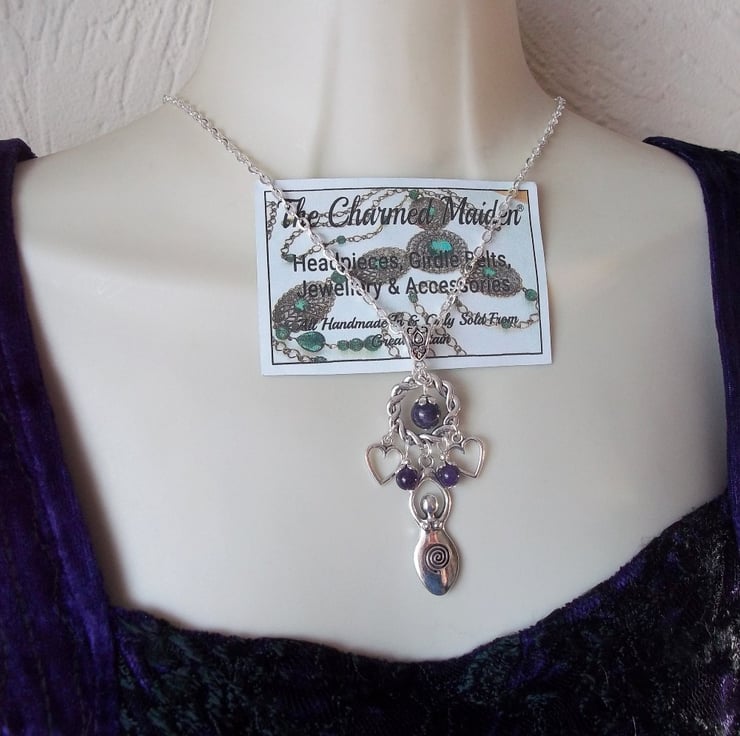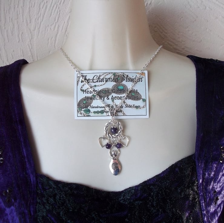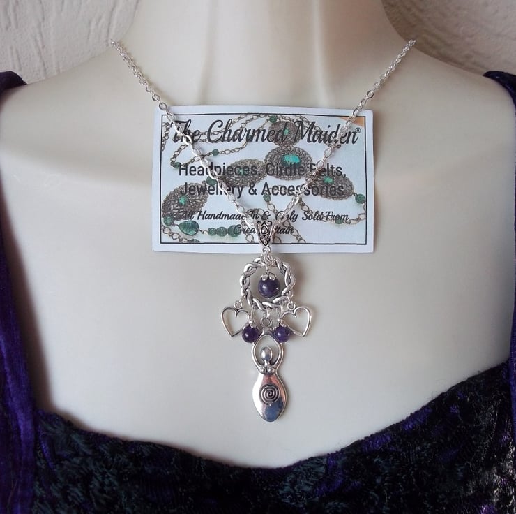 Amethyst Heart Goddess Pendant Necklace, Pagan, Wiccan