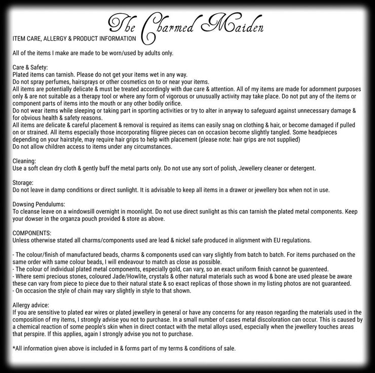 Handmade by The Charmed Maiden®. All designs/images/photos & descriptive text are subject to copyright law.