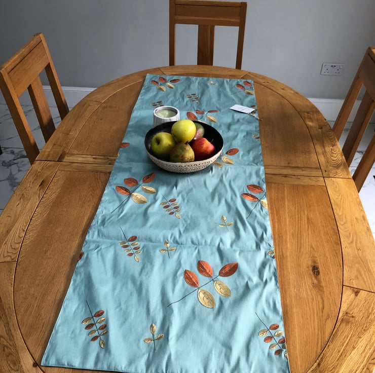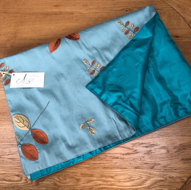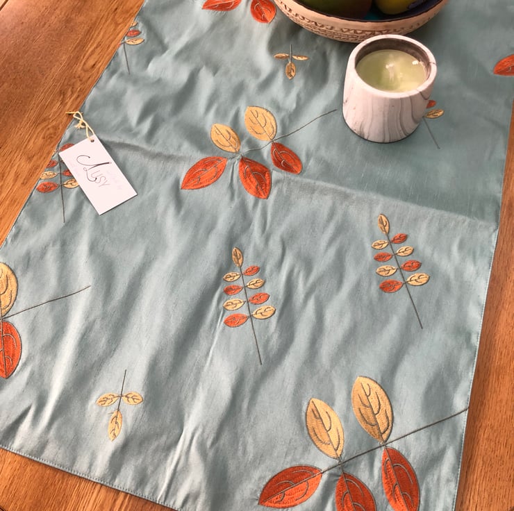 Stylish table runner makes from a fantastic gold and rust colored petal machine embroidered design on a very popular not silk fabric. The dinning table will look more elegant and special.