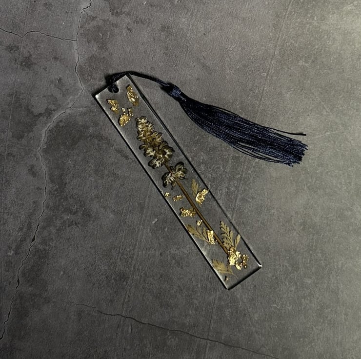 Perfectly Imperfect Resin Dried Flower Bookmark Page Marker Blue Gold Leaf