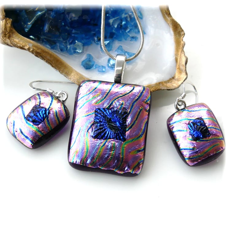 The dichroic glass cabochons for the pendant, matching earrings were handmade, by me with love.