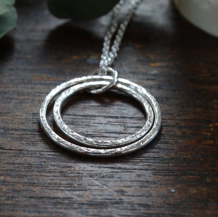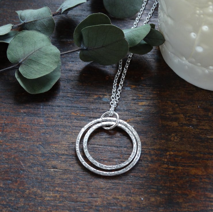A pretty handmade contemporary sterling silver hoop pendant made from recycled sterling silver.