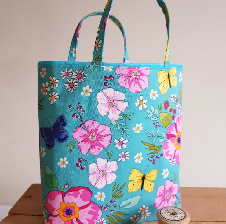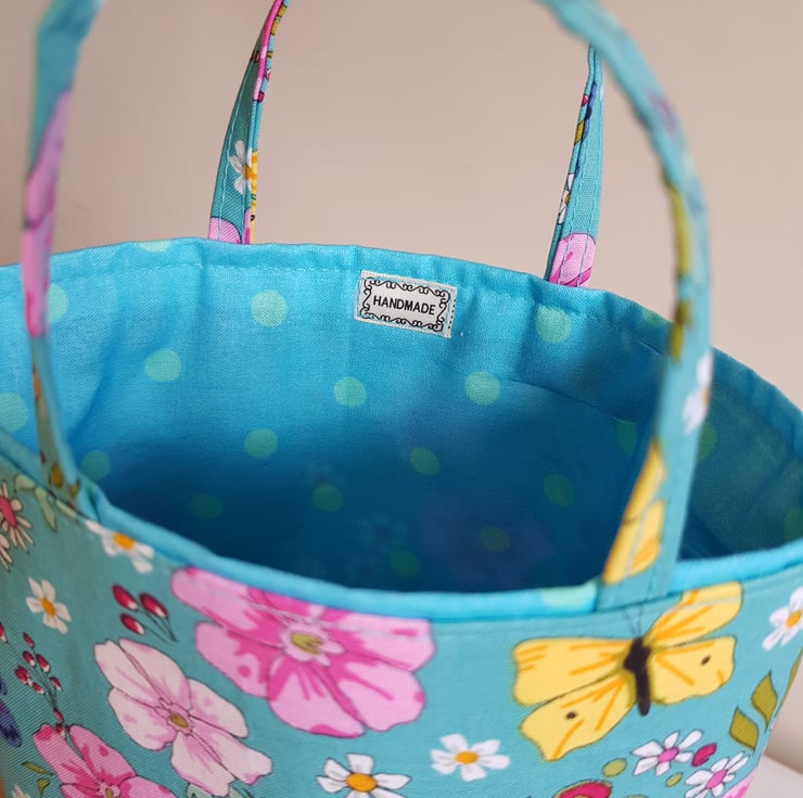 Handsewn by me with cotton fabric it is lined and interfaced so will keep its shape. And it can be used to keep something in so has a future use too.