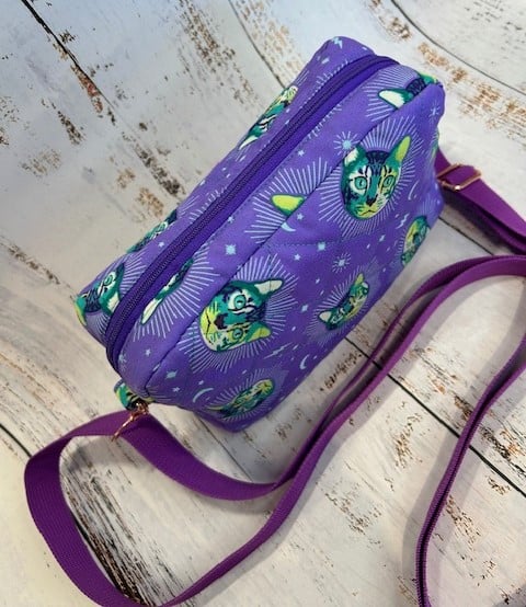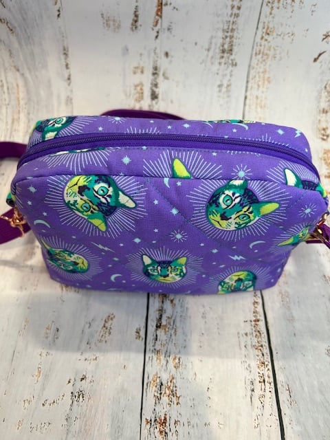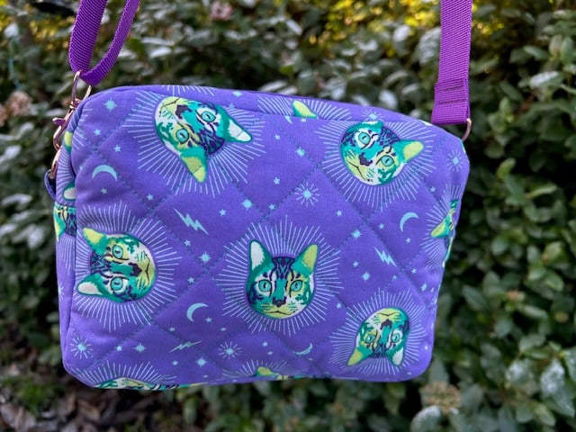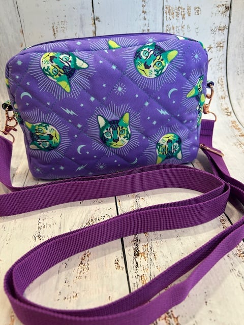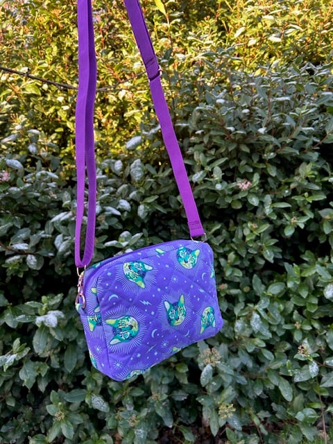 A lovely, softly quilted camera style cross body bag, created using 100% cotton from the Curiouser and Curiouser range by fabric designer Tula Pink. The Curiouser and Curiouser designs are based on the wonderful Alice in Wonderland book by Lewis Carroll.
