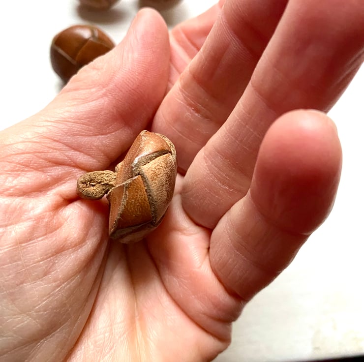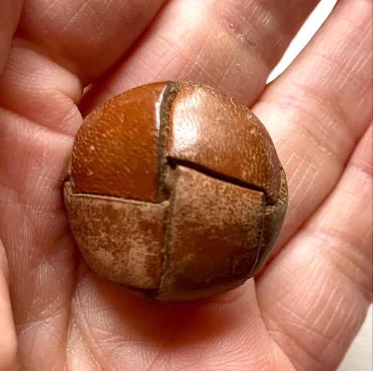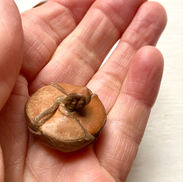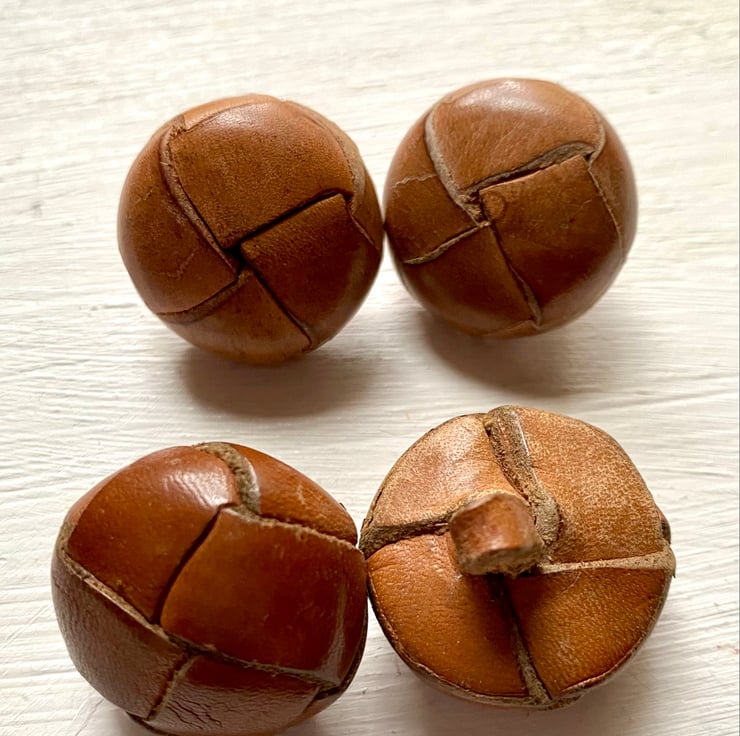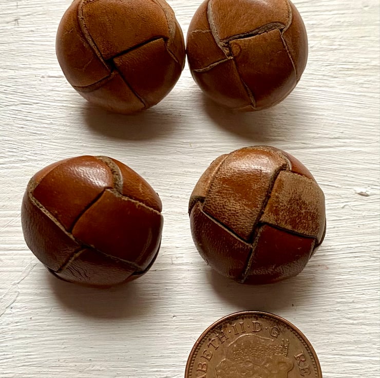 Measuring 2.5cm in diameter. These leather knot style buttons with shank, would suit a coat or jacket. They could also be used for bag closures.