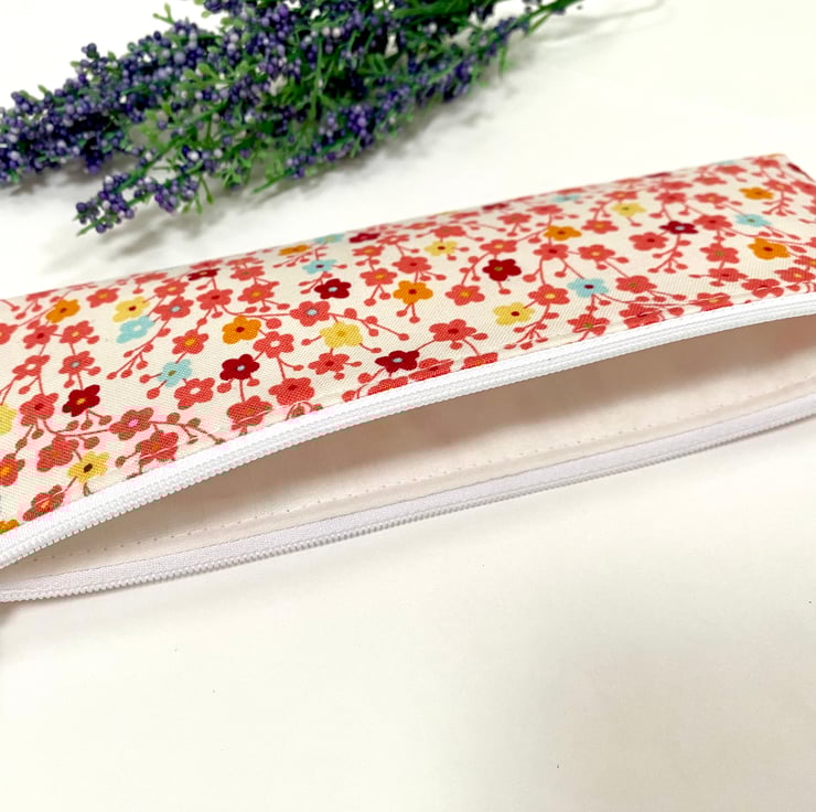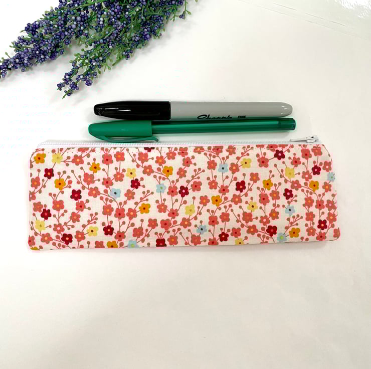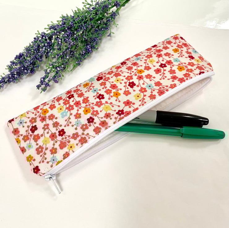 Handmade Skinny Pencil Case - Ditsy Floral Design in Makower Fabric.