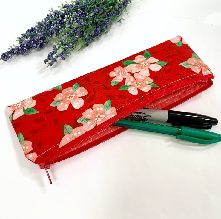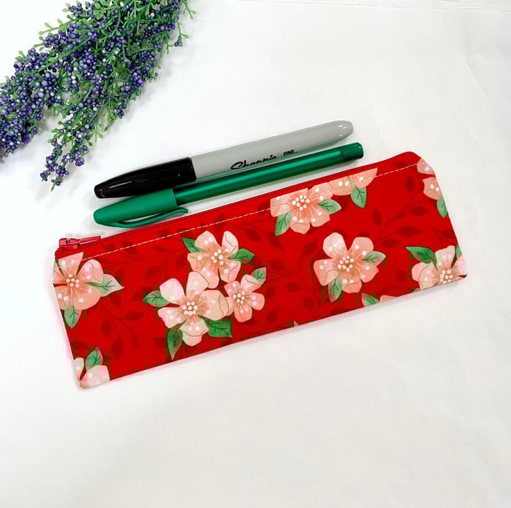 Handmade Skinny Pencil Case - Spring Blossom Floral Design