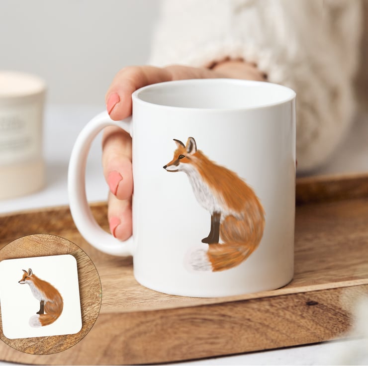 Ceramic mug featuring my original hand drawn design of a beautiful fox who I've named "Frederick". There is an option to purchase a matching hard backed coaster - please select from the drop-down menu at checkout.