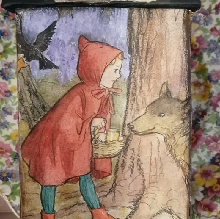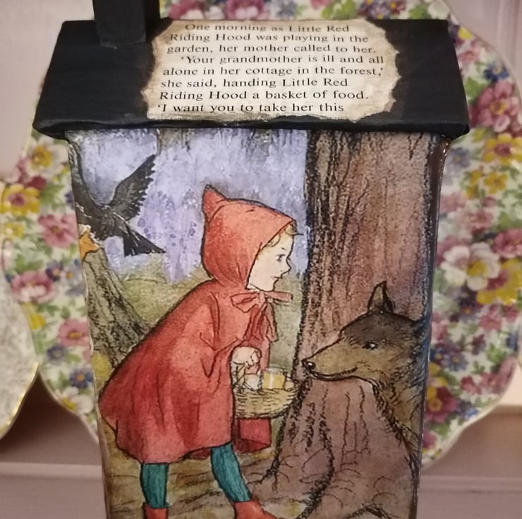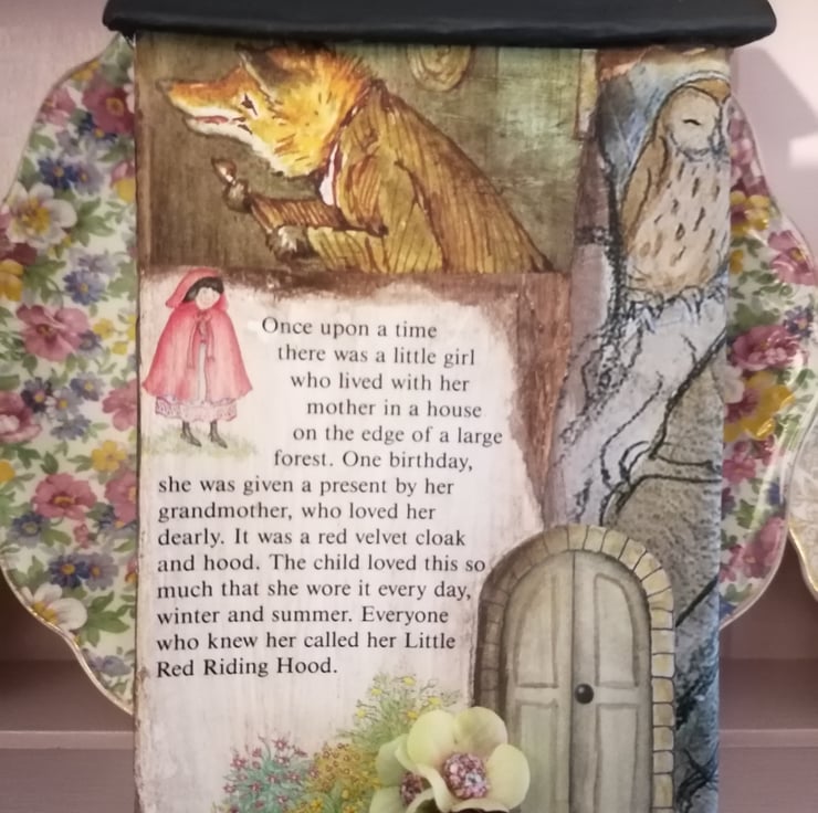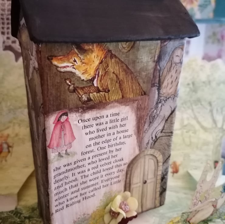 Handcrafted Paper Mache House Little Red Riding Hood Shelf Sitter Decoration