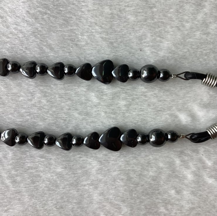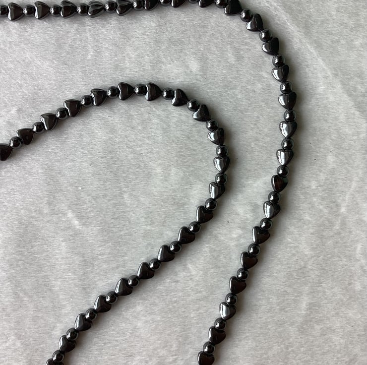 I’ve used Hematite hearts, Hematite beads and 20 mm Rubber Connectors .