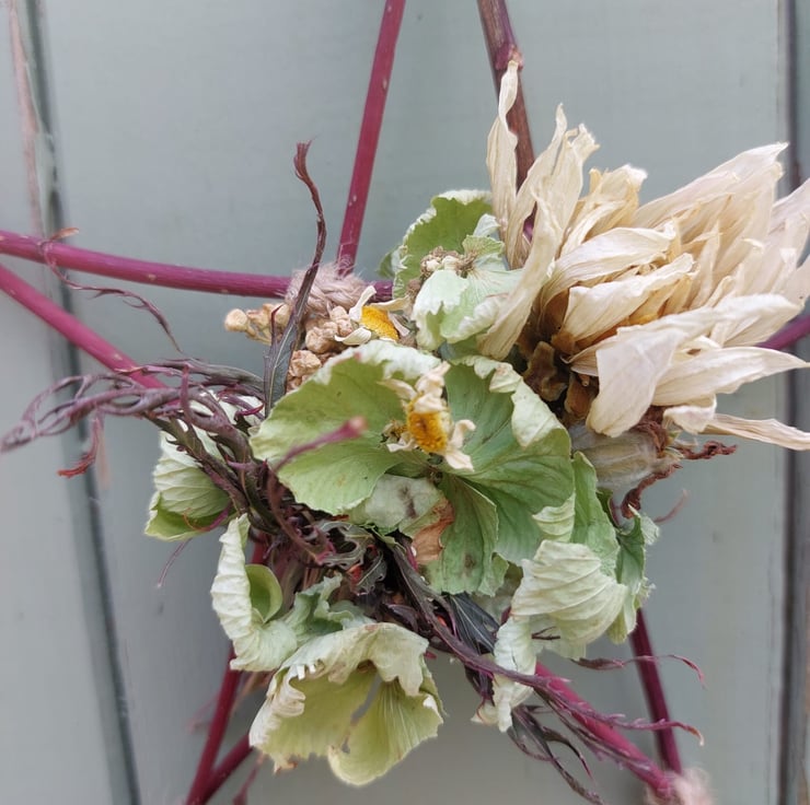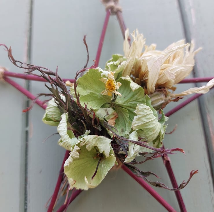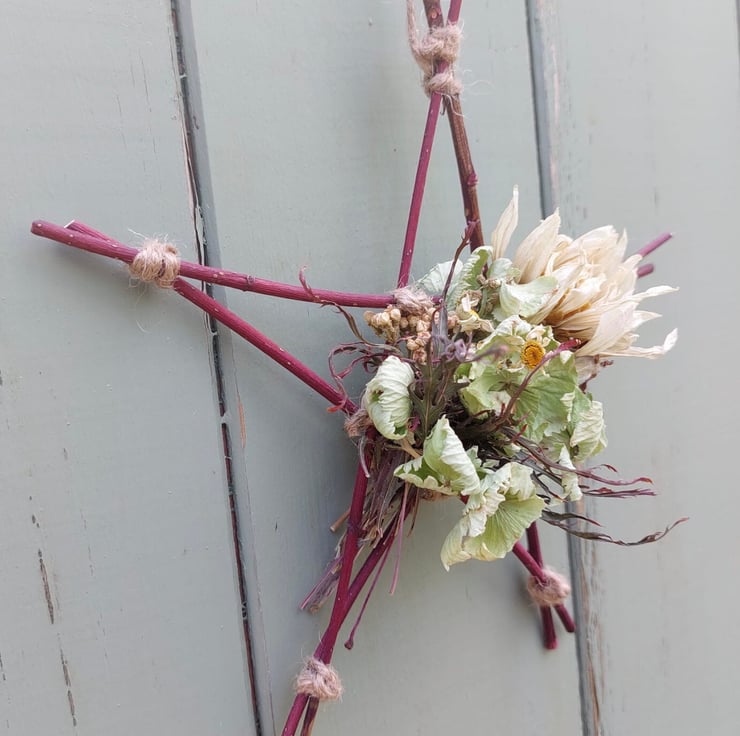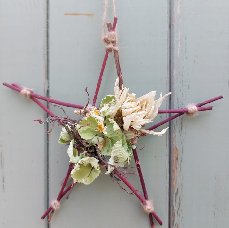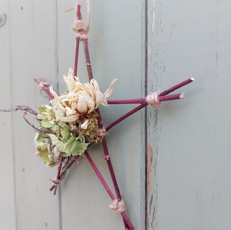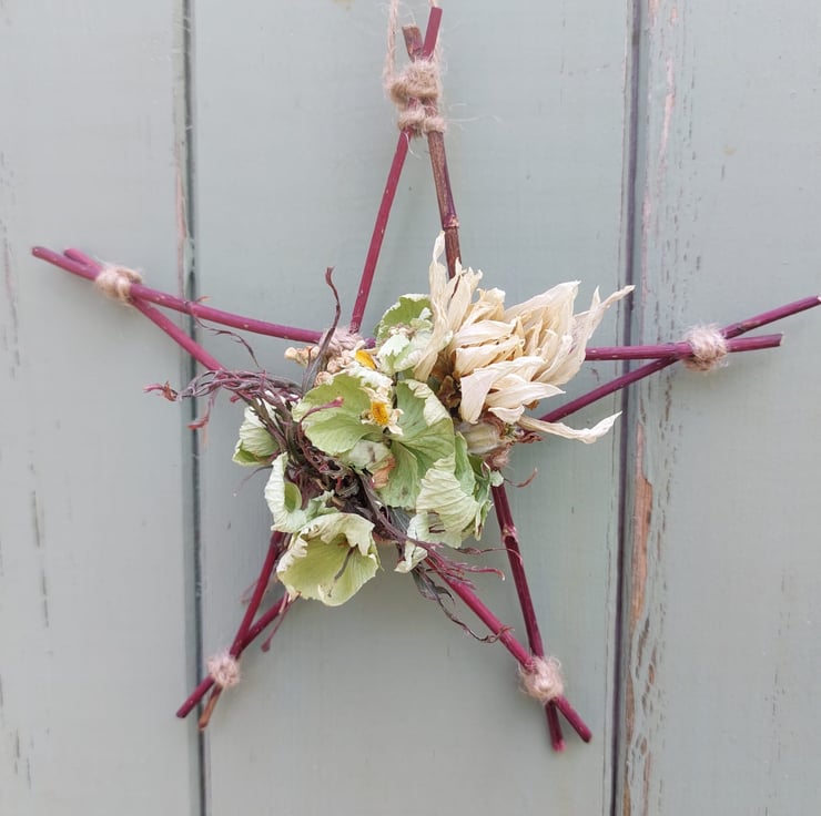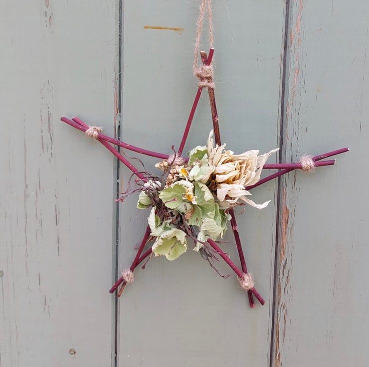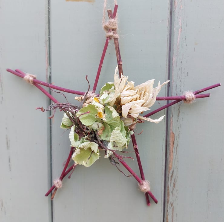 A handmade dried flower star measuring approximately 18x18cm at it’s widest points.