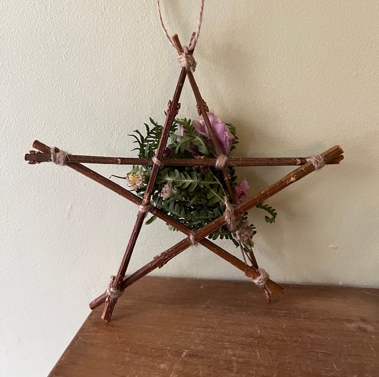 A piece of string has been added to allow the star to hang or it can be attached to something using the twig frame.
