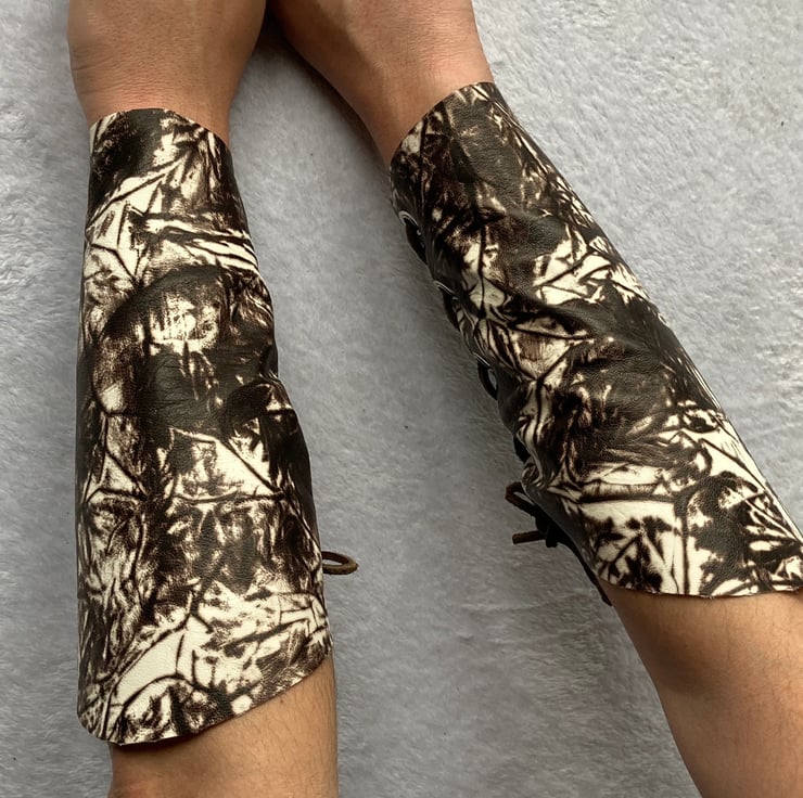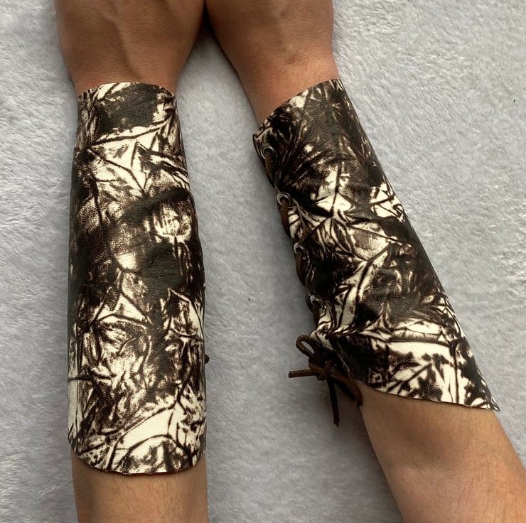 Large sized - Very Soft Pair Dark Brown/White TieDyed Coloured Distressed Lambskin Leather Bracers (sold with lacing)