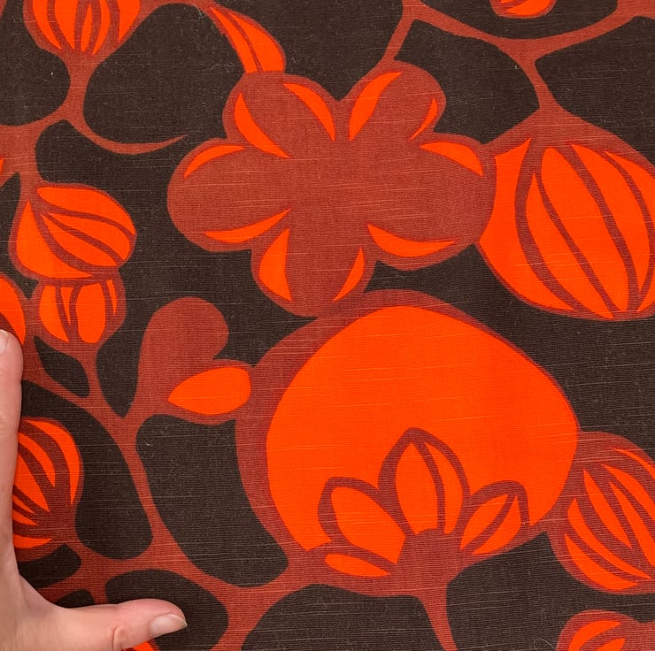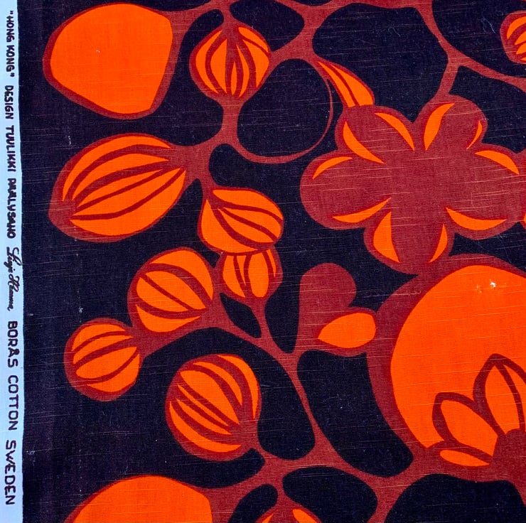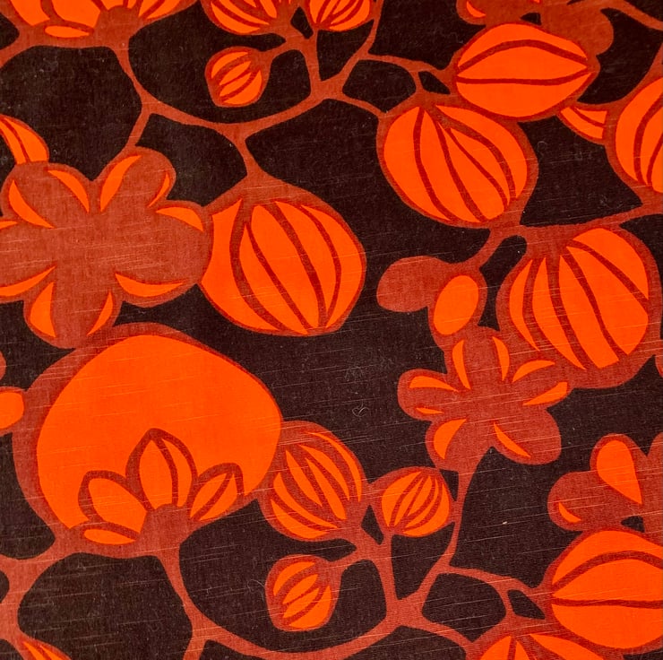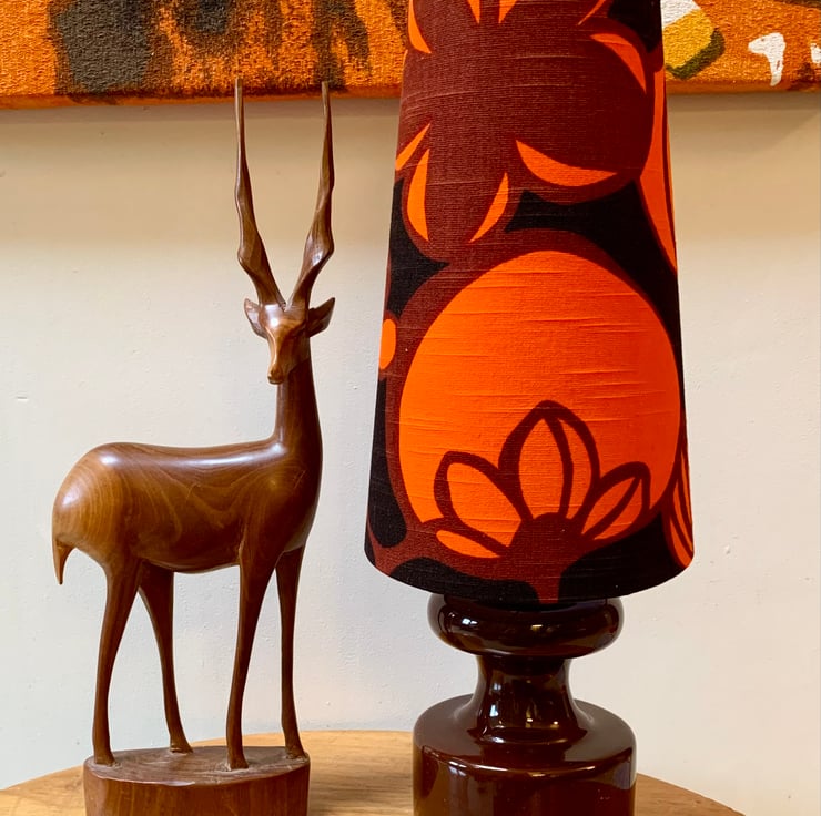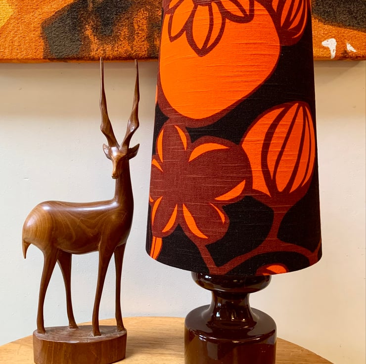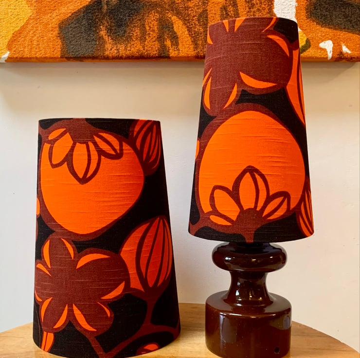 Scandi Retro HONG KONG Lampshade BORAS Orange Brown 60s 70s vintage fabric - featuring a fabulous Swedish vintage fabric, ‘ Hong Kong ‘ by Tuulikki Paallysaho for Boras - A bold feature in either a contemporary or retro setting.