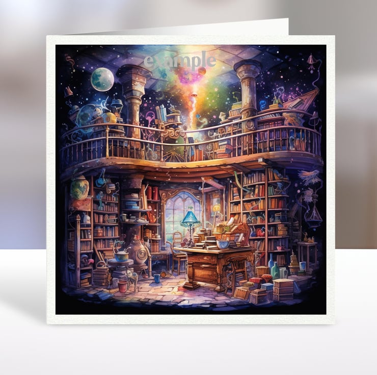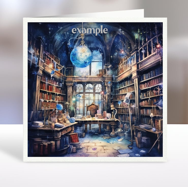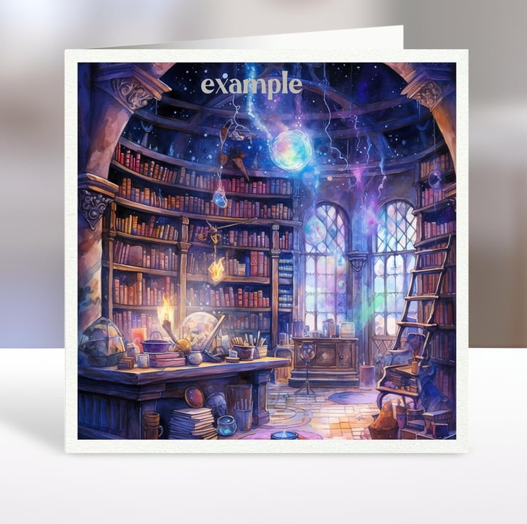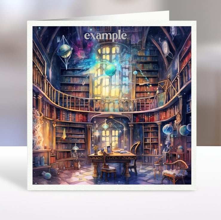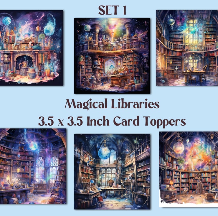 A set of six 3.5 inch square card toppers - Magical Libraries set 1 of 2