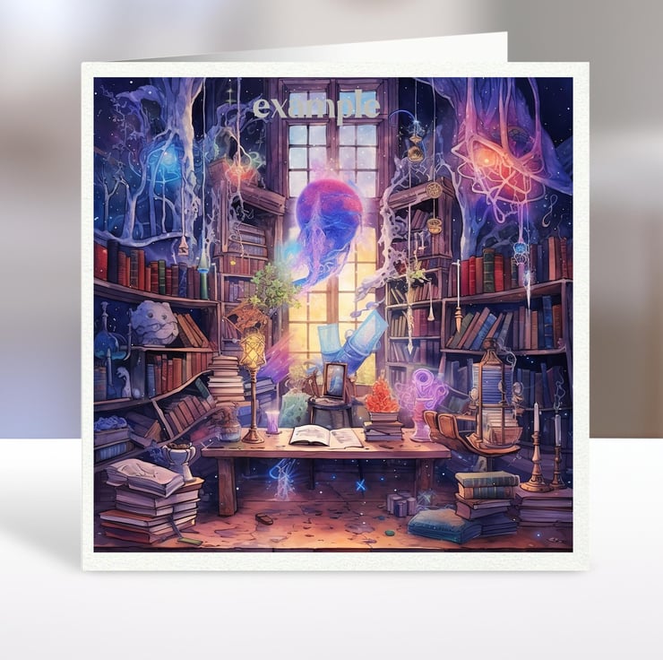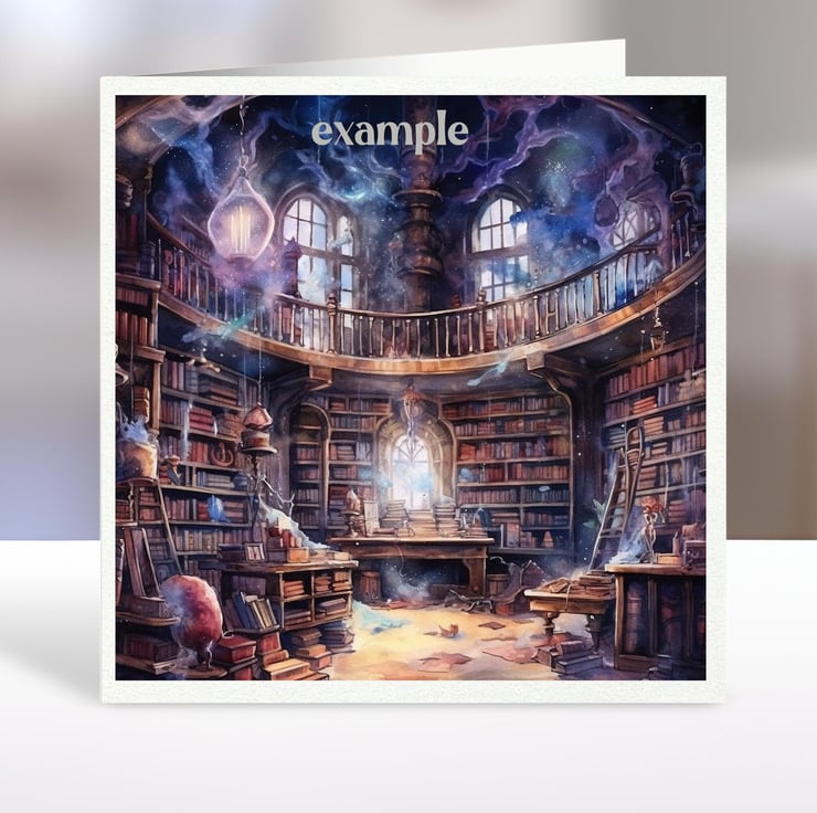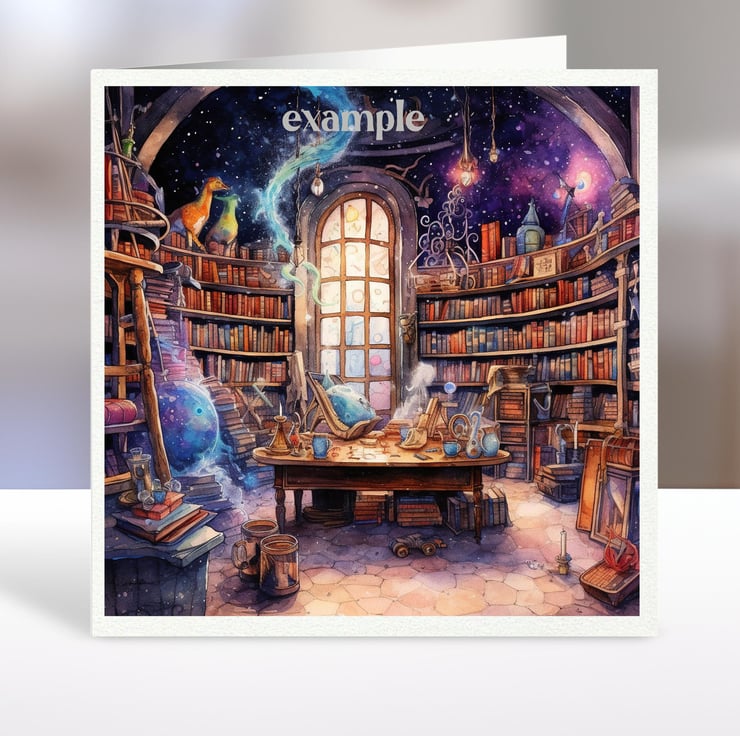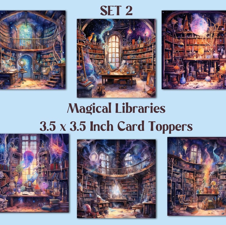 A set of six 3.5 inch square card toppers - Magical Libraries set 2 of 2