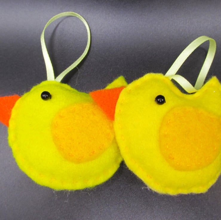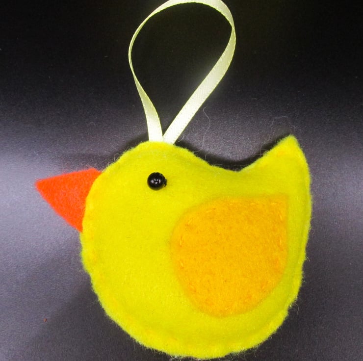 Hand made felt Easter Chick decoration which can be individually hung on a houseplant or Easter Tree, strung on a garland or used around the garden for a chocolate free Easter Egg hunt.
