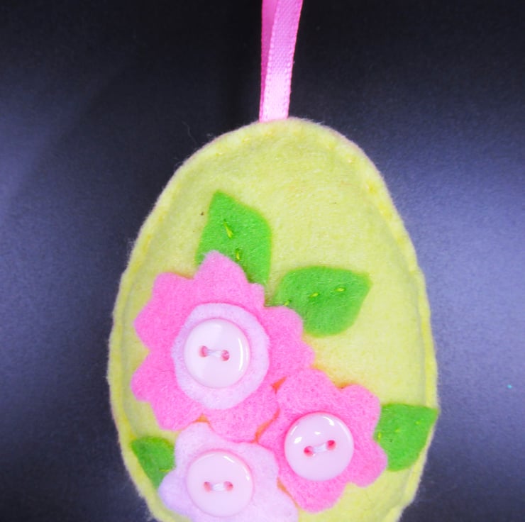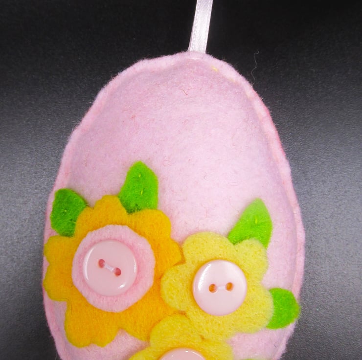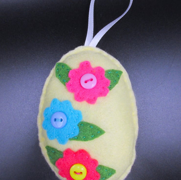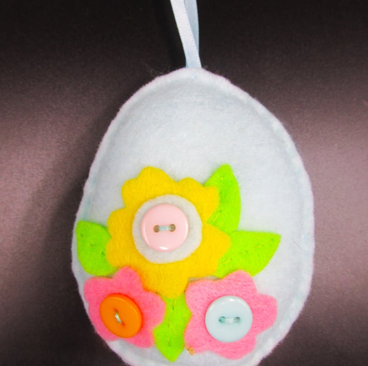 Hand made Easter Egg Shapes decorated with felt flowers and buttons. These can be strung together for a garland along with some of our other felt shapes, hung on an Easter tree or houseplants, or used for an Easter Egg hunt.